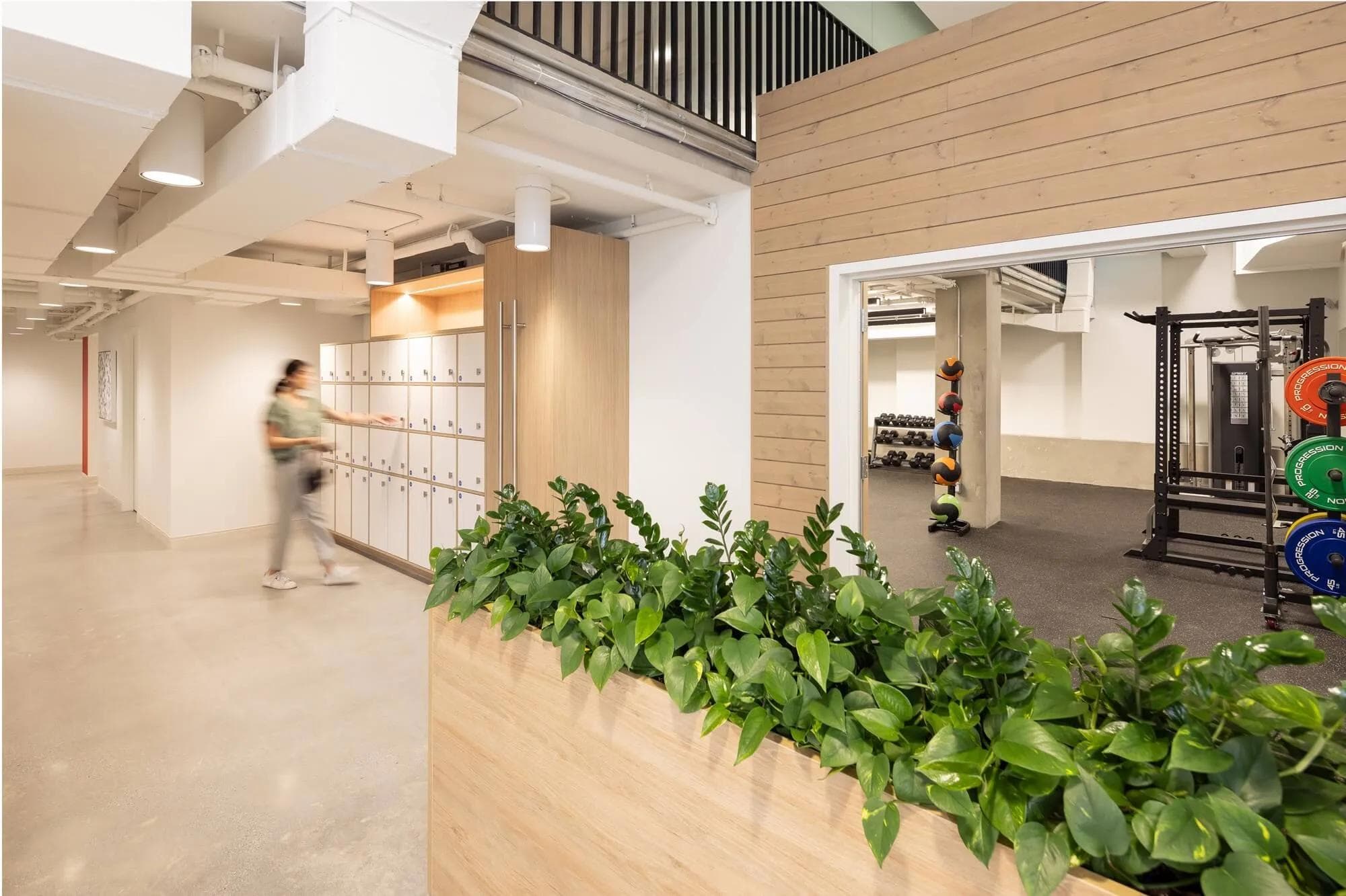 - Workout/Exercise spaces: Incorporating small workout zones or movement areas with a variety of equipment, from yoga mats to stationary bikes, supports employee well-being.