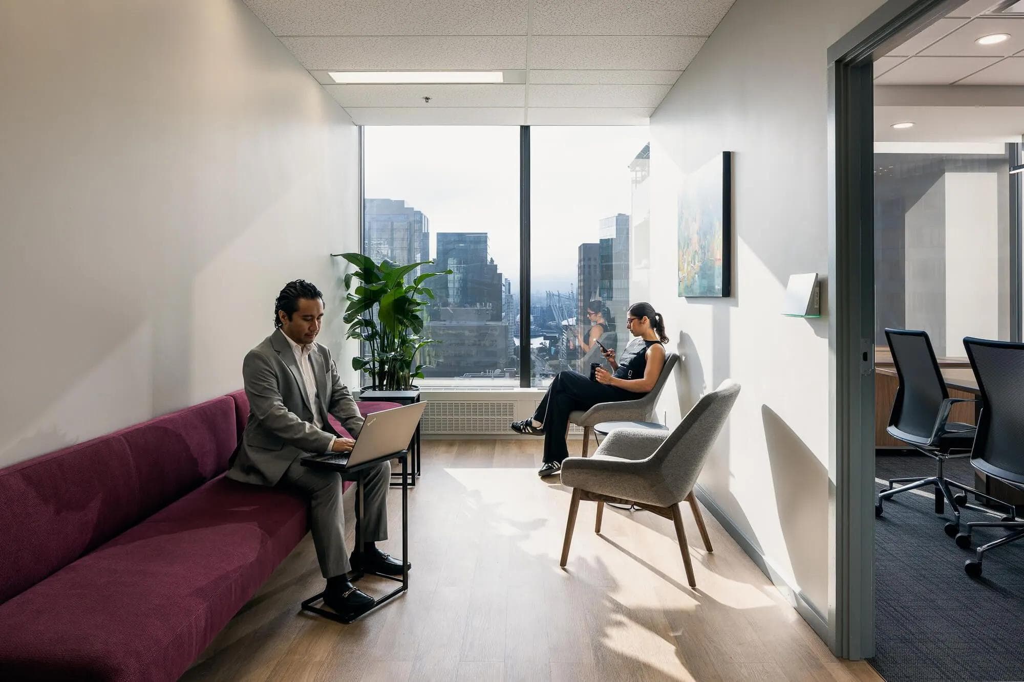 - Purposeful Waiting Areas: Transform reception or waiting zones into productive touchdown spots by adding small laptop tables, integrated power, and comfortable seating. These micro-work areas make use of underutilized space while supporting quick tasks.